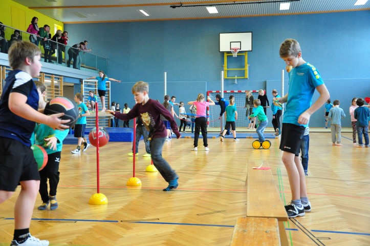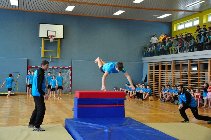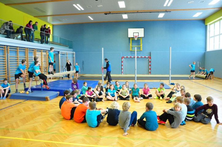 Besonders gut gefiel den zukünftigen Mittelschülern die Turnshow zu Beginn des Tag der offenen Tür. Die Sportmittelschüler gewährten den Volksschülern Einblick in den Turnunterricht und in die Vorbereitungsarbeiten für das am 25. u. 26. März stattfindende Schauturnen mit dem Motto „Spektakulär“. Der Elternverein organisierte ein Buffet und lud die interessierten Volksschüler zu einem Mittagessen in die Ausspeisung der Sport NMS Bad Kreuzen ein. Neben einem Workshop in Kleingruppen am Nachmittag konnten die Volksschüler am Ende der Veranstaltung ihr Können an verschiedenen Geräten im Turnsaal selbst ausprobieren, was vielen großen Spaß machte.