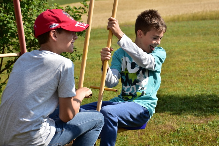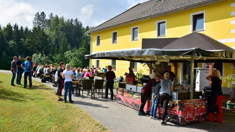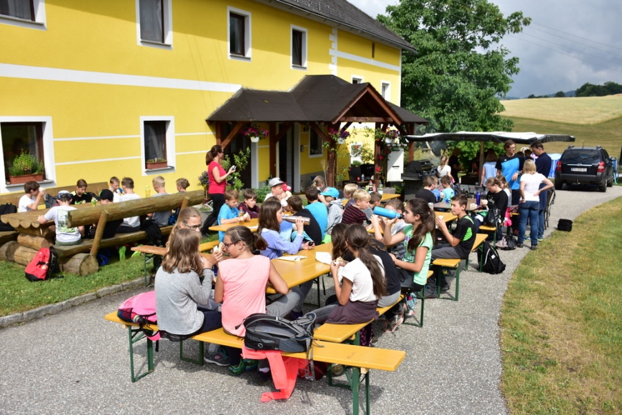 Fotos vom Wandertag der ersten Klassen zu Familie Huber!