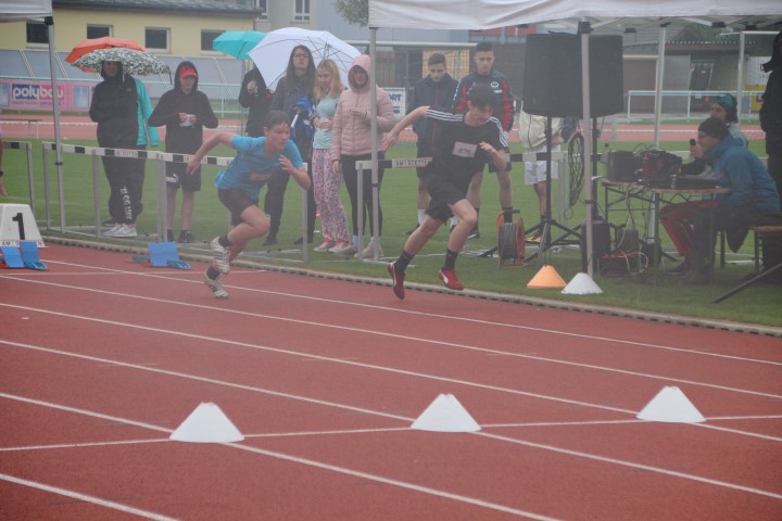 Unwirtliche Bedingungen herrschten bei der diesjährigen Laufolympiade in Amstetten, dem größten Laufevent im Großraum Amstetten. Mehr als 1300 Schüler aus über 50 Schulen ermitteln hier jedes Jahr in einem 60m und 600m Bewerb die besten Läufer. Bedingt durch Regen, Kälte und Wind wollte bei den 25 Mädchen und Burschen der Sportmittelschule Bad Kreuzen anfangs keine richtige Lauflaune aufkommen, aber mit Fortdauer des Bewerbs, gewöhnten sich die alle an den Regen und das Interesse galt vermehrt den Ereignissen auf der 60m Laufbahn, wo die ersten vielversprechenden Zeiten der Sportmittelschüler vom Platzsprecher durchgegeben wurden.